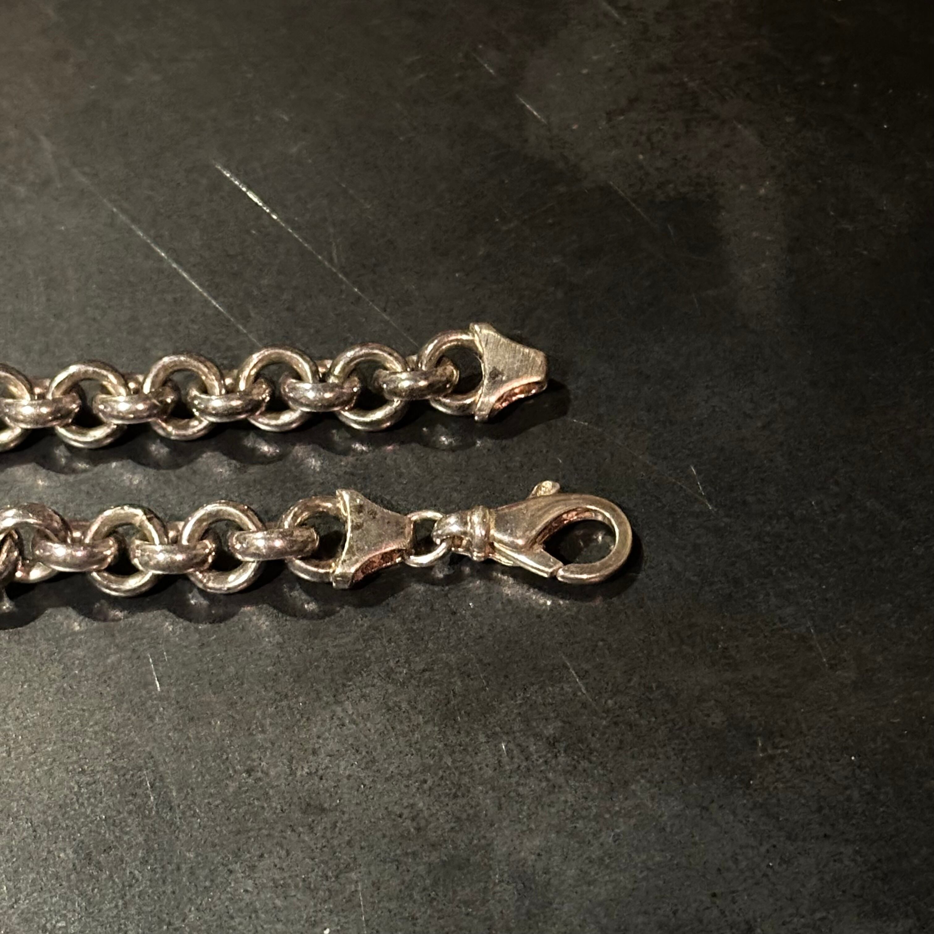 海外で買い付けたエスカルゴチェーンデザインのシルバーバングルです。