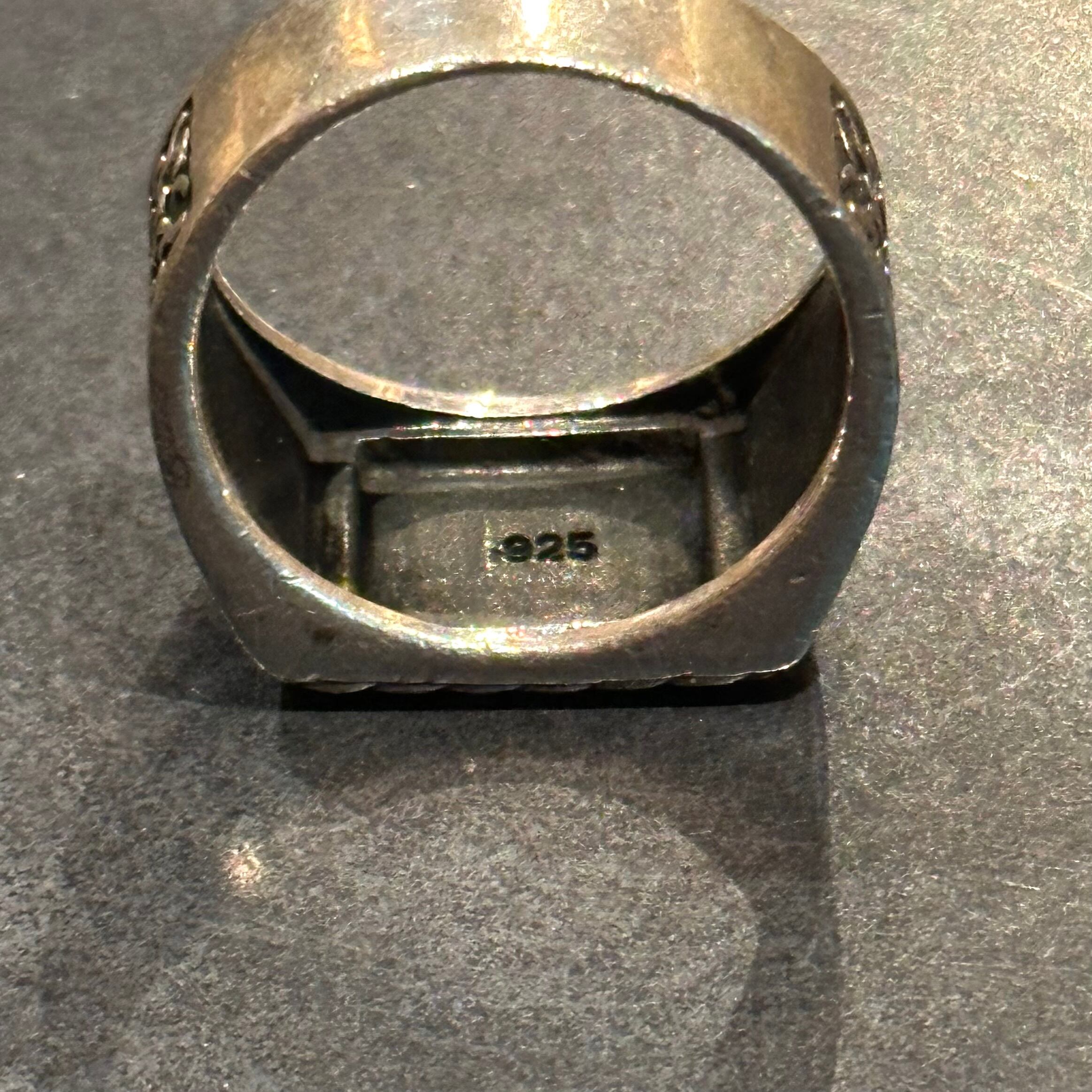 海外で買い付けたスクエアデザインのシルバーリングです。