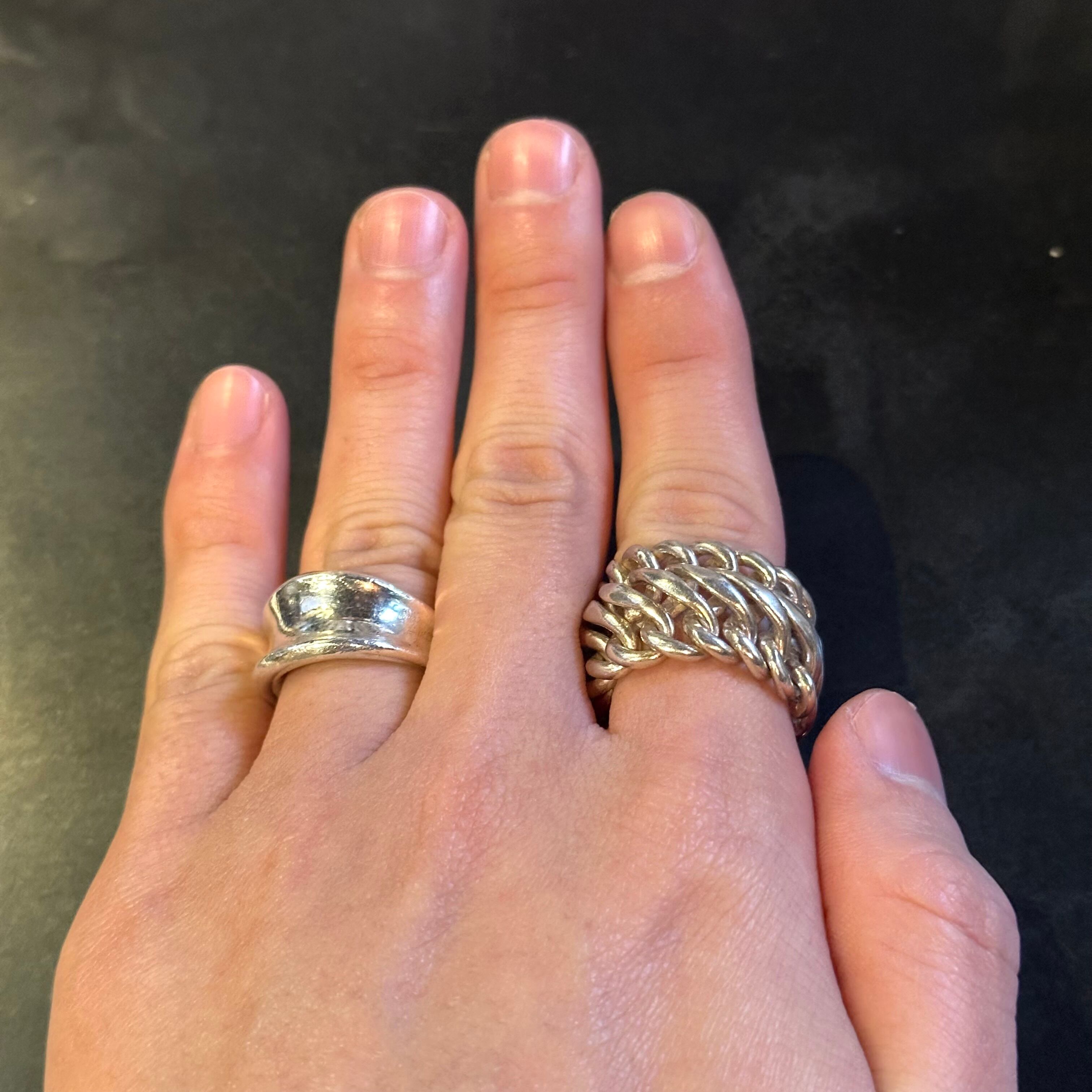 海外で買い付けたチェーンデザインのシルバーワイドリングです。