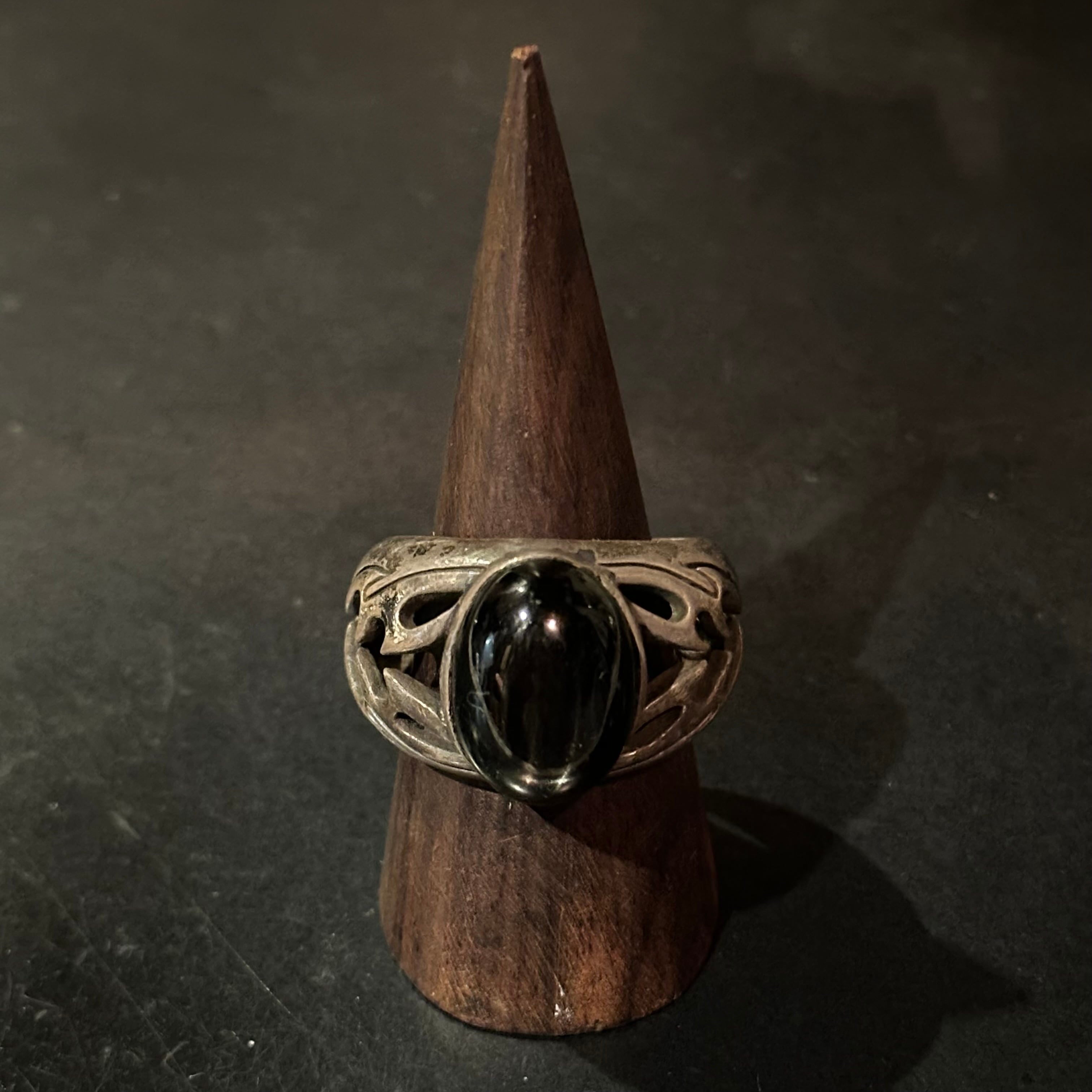 海外で買い付けたオニキスデザインのシルバーリングです。