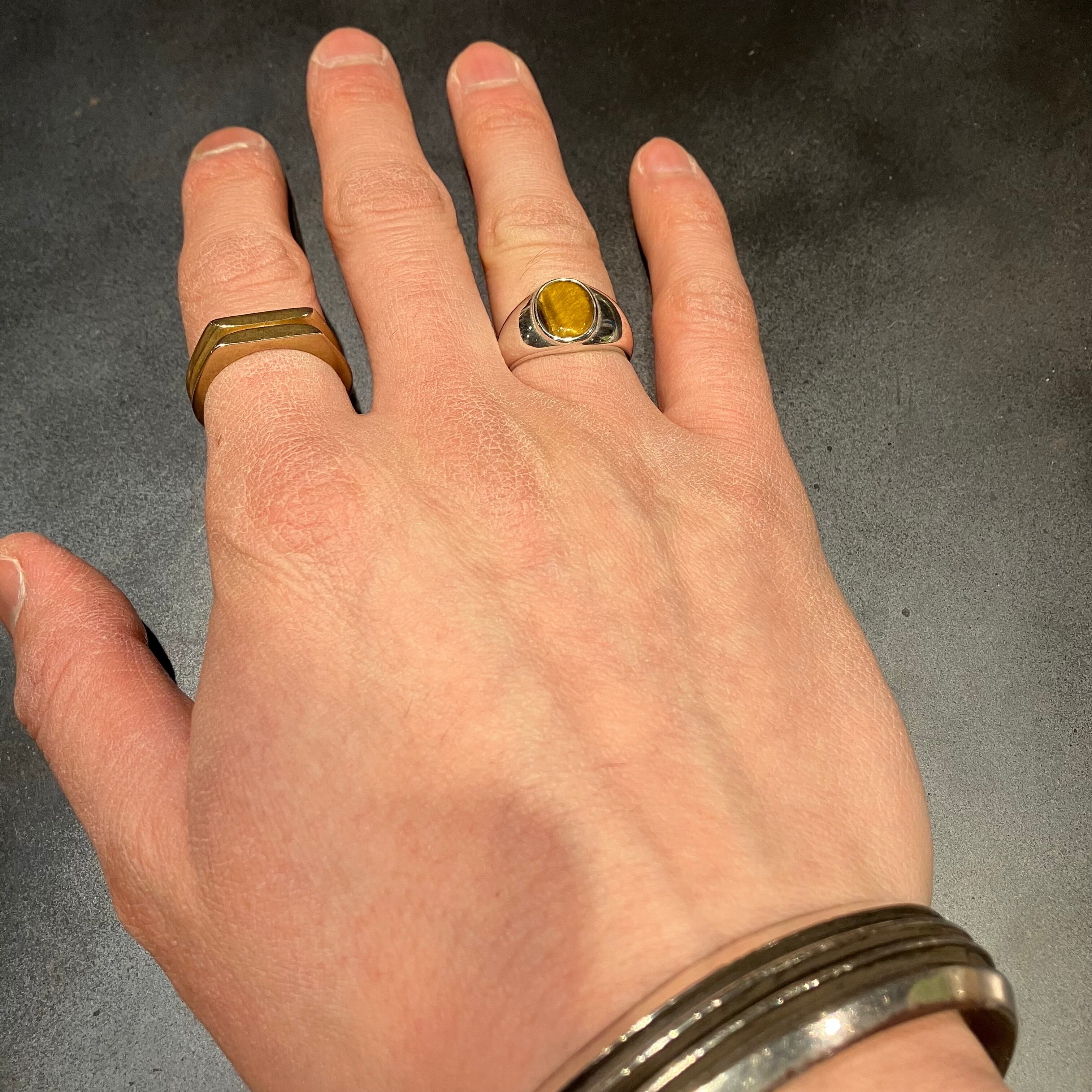 海外で買い付けたタイガーアイデザインのシルバーリングです。