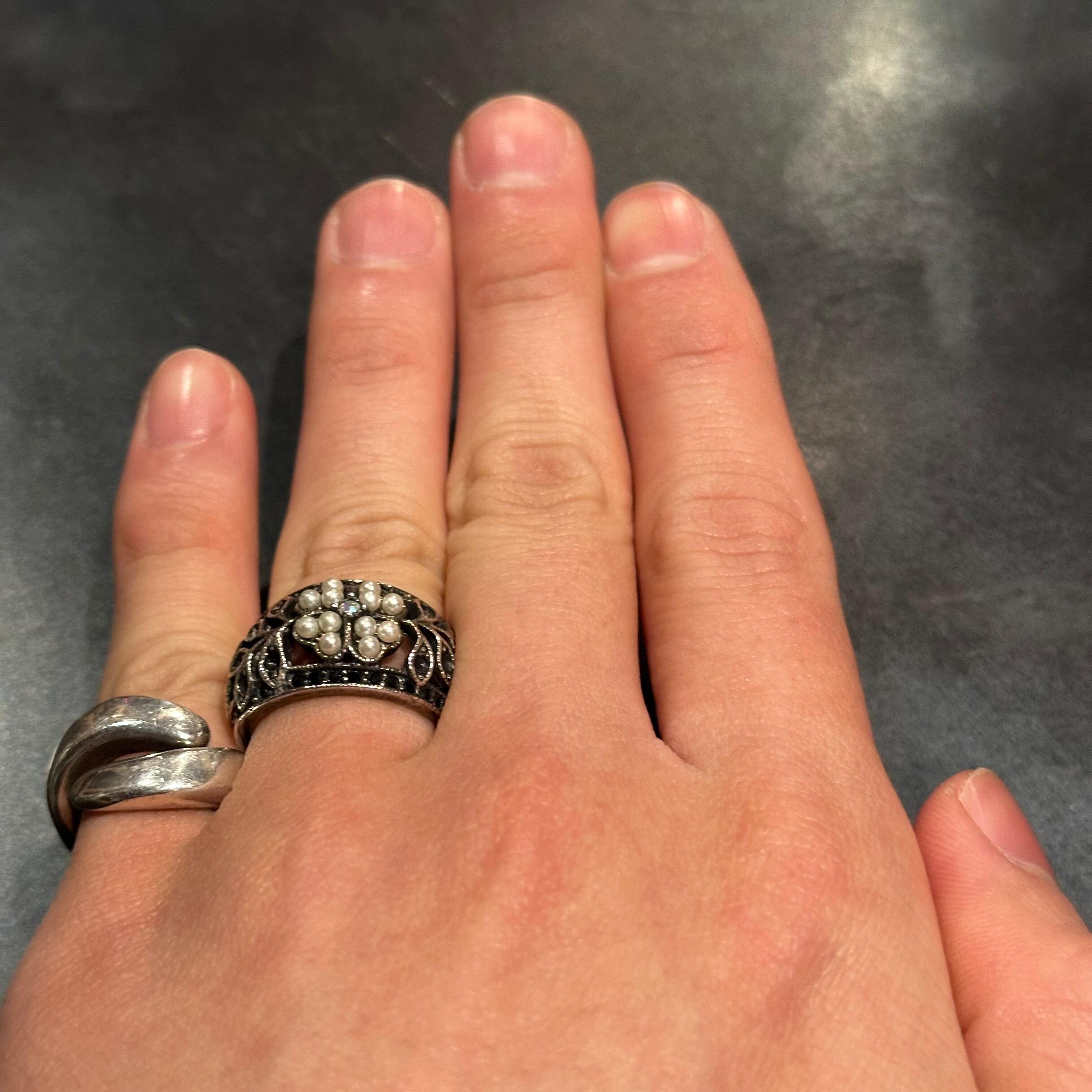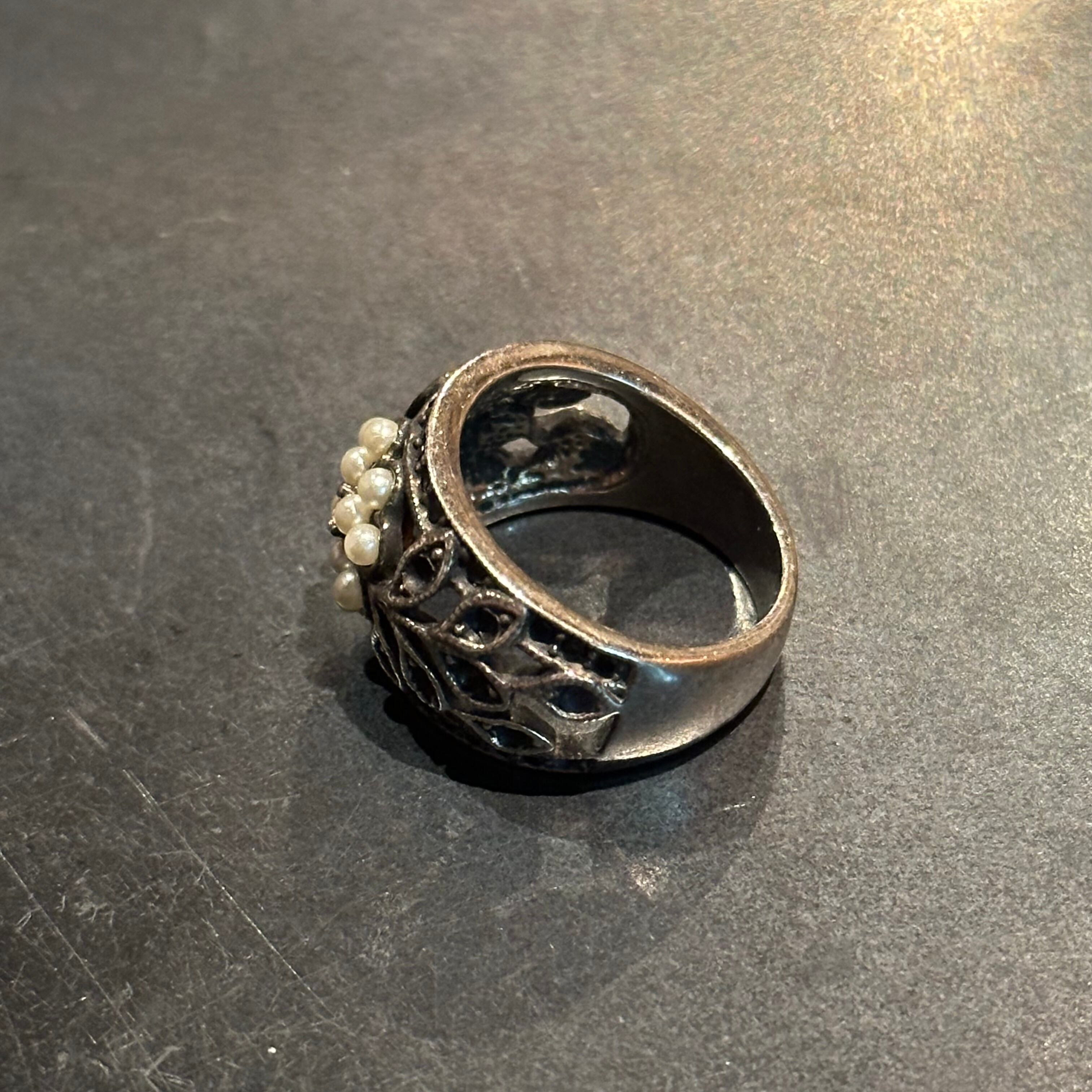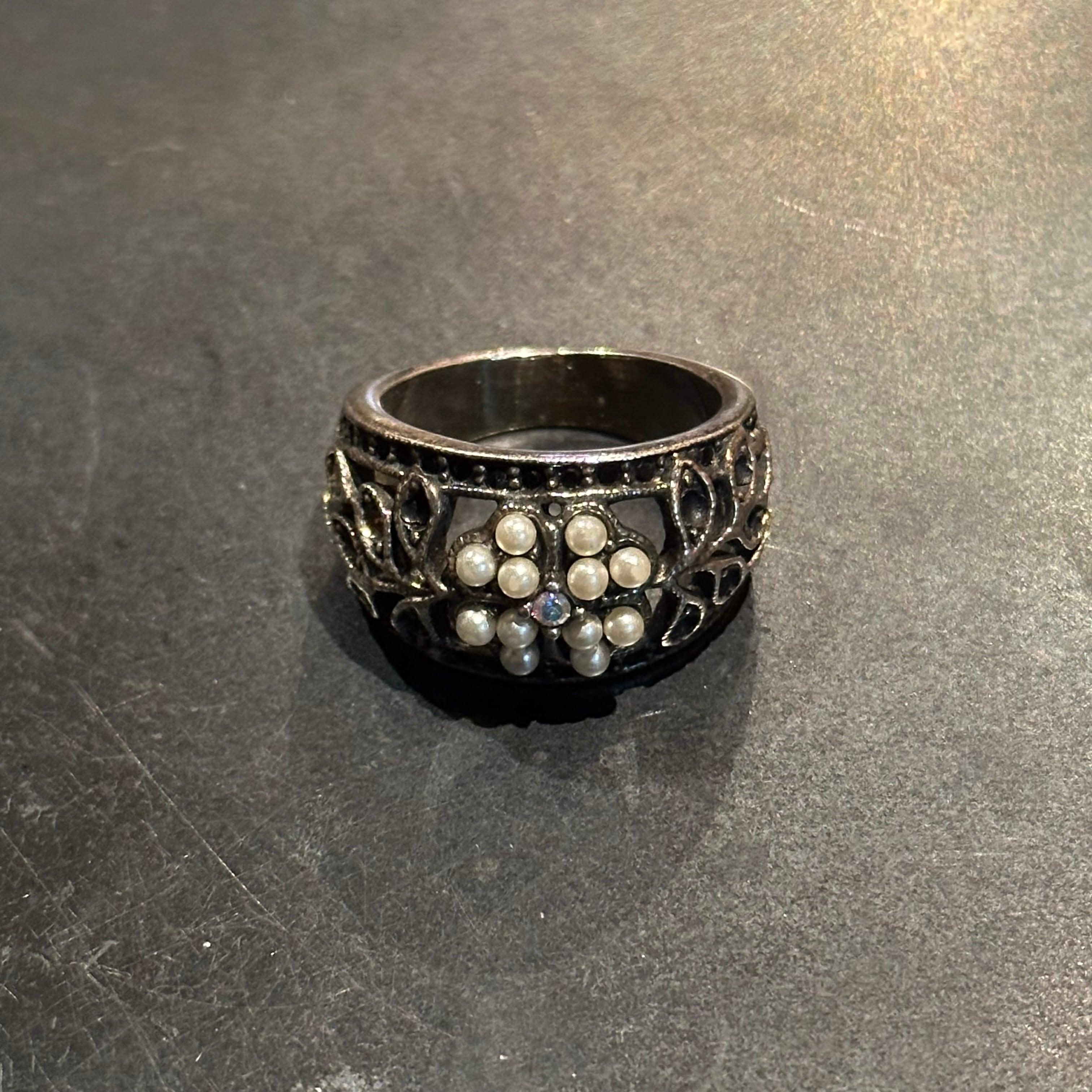 海外で買い付けたクローバーデザインのシルバーリングです。
