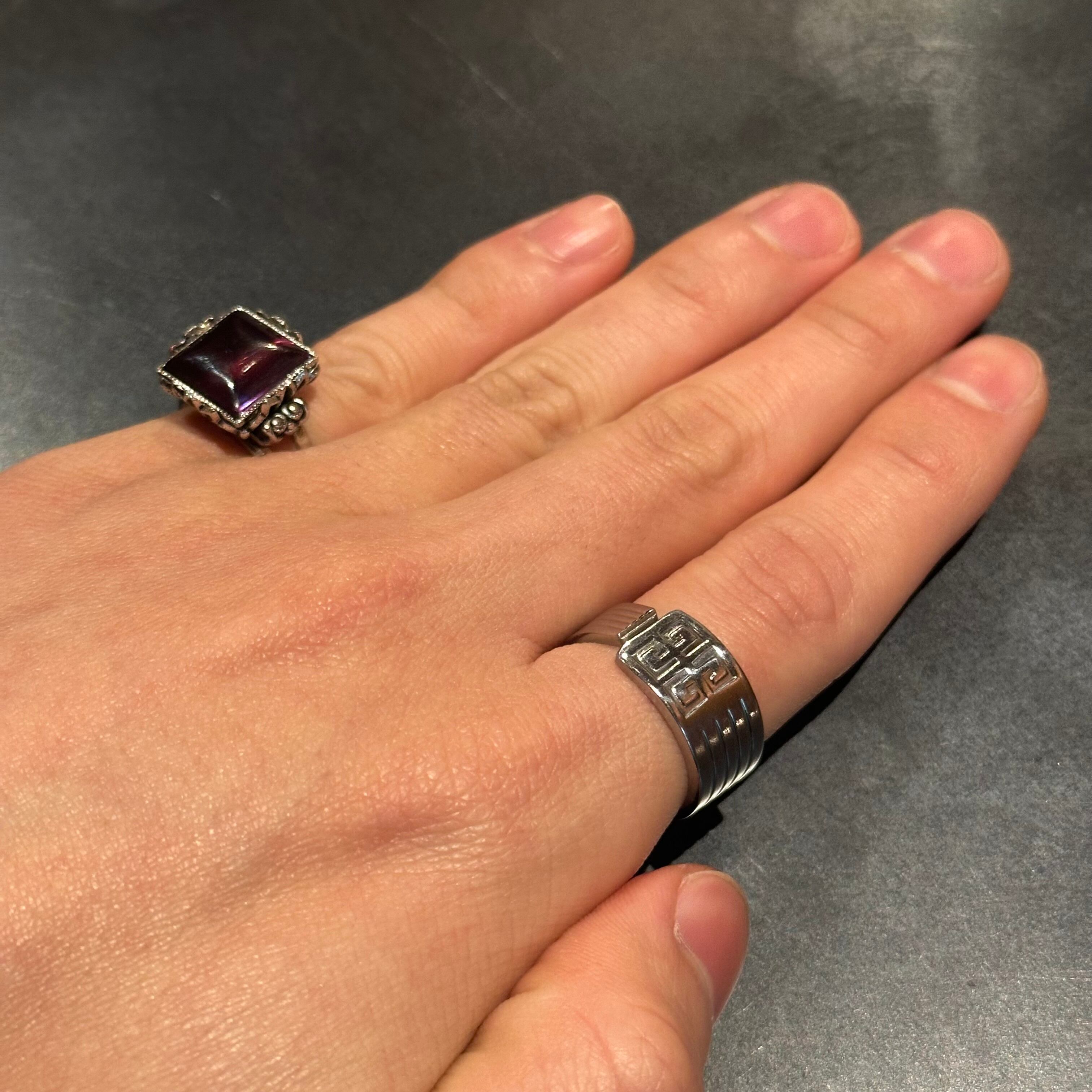 海外で買い付けたパープルストーンデザインのシルバーリングです。