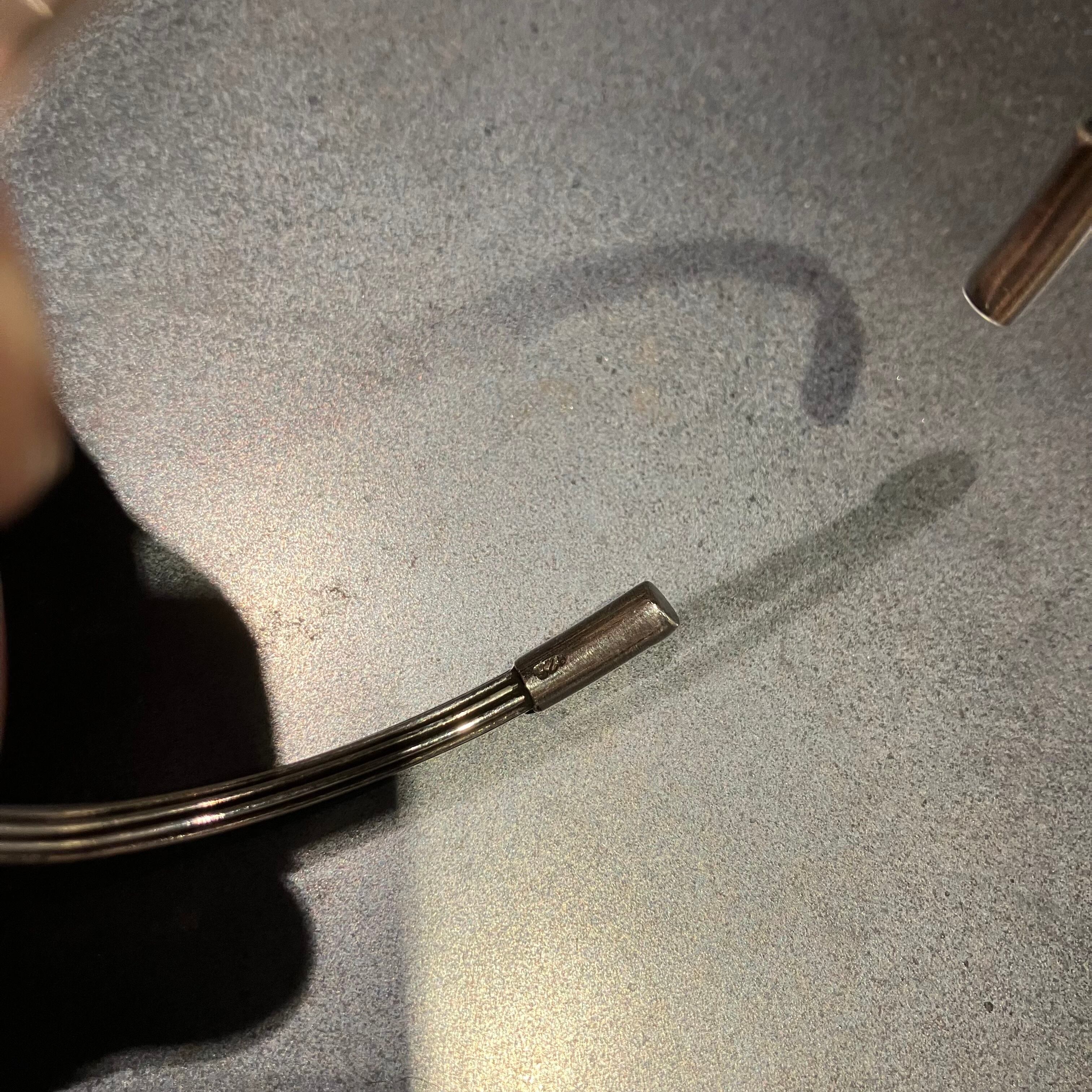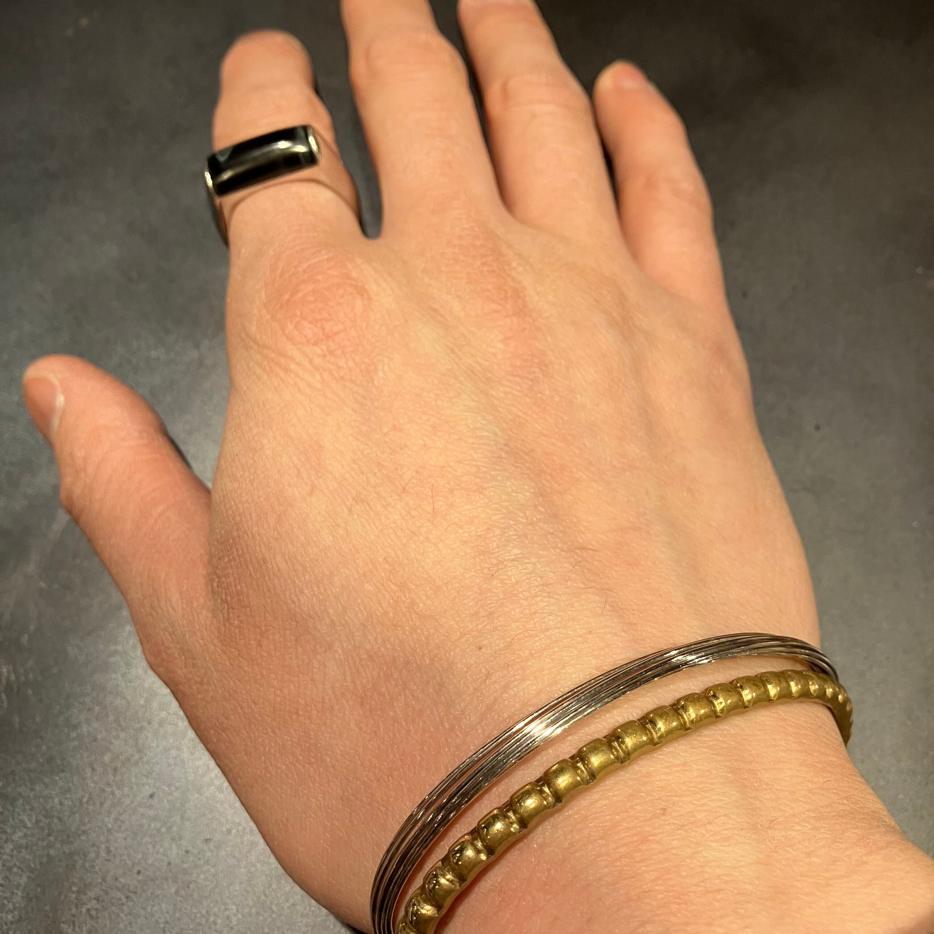 海外で買い付けたワイヤーデザインのシルバーバングルです。