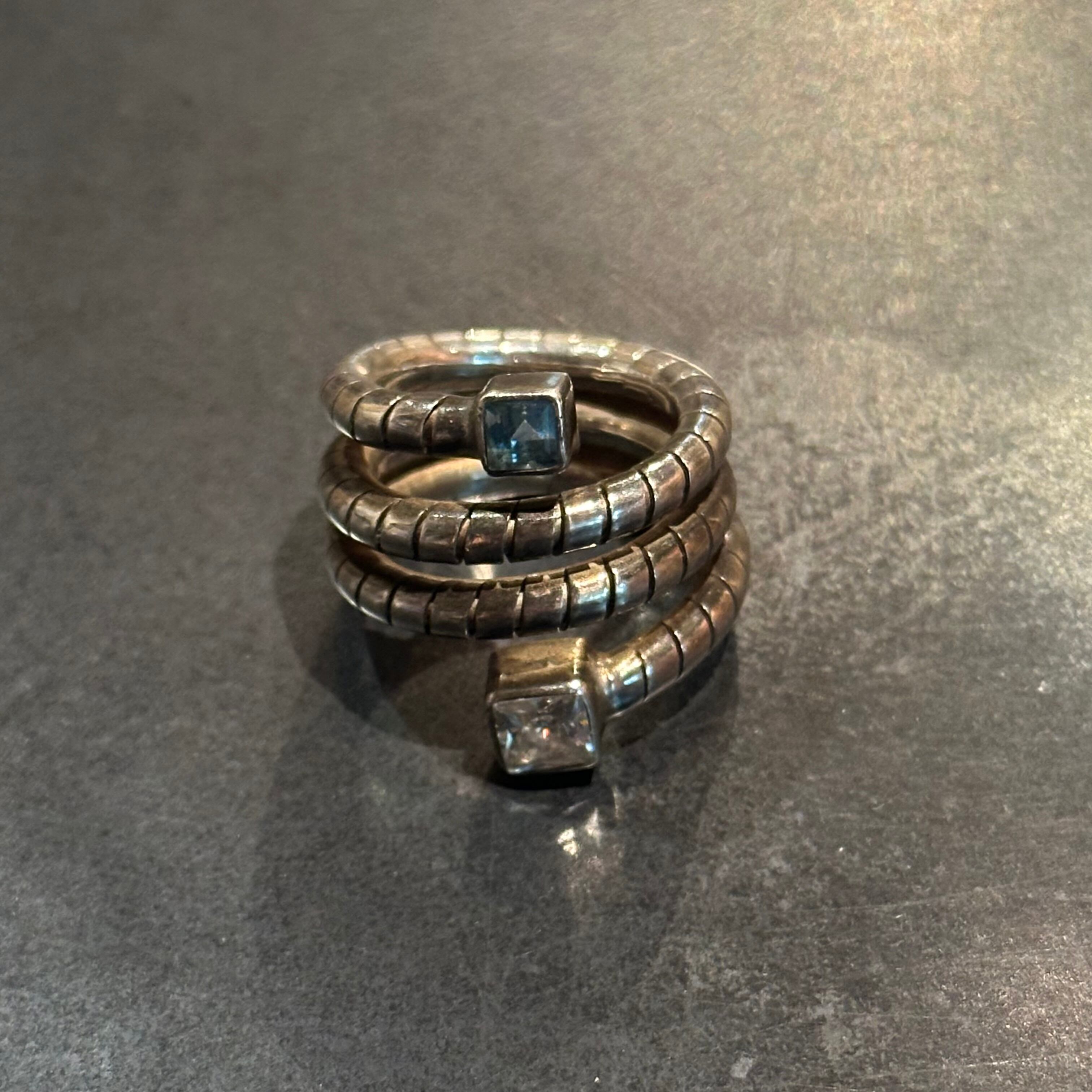 海外で買い付けたダブルストーンデザインのツイストシルバーリングです。