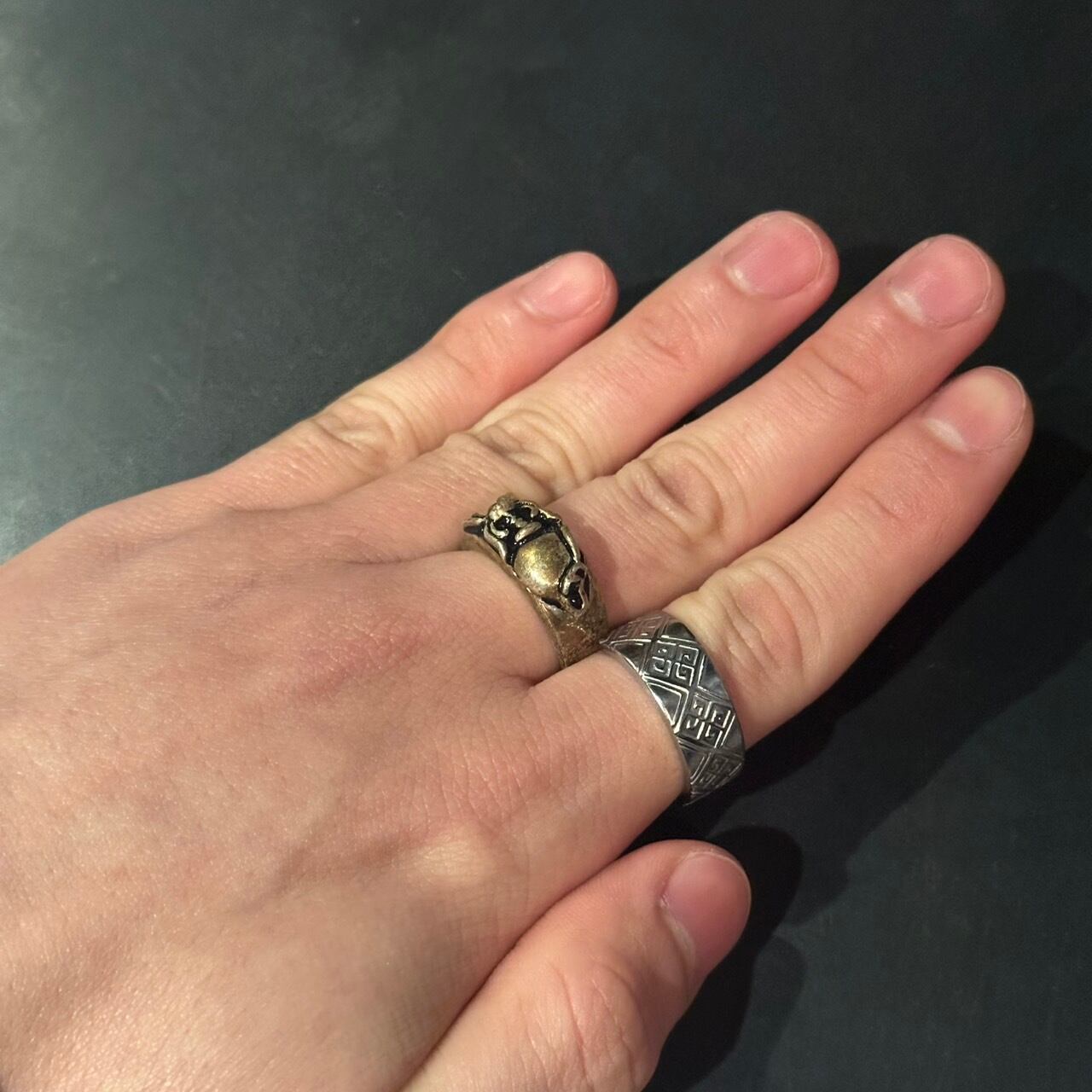 海外で買い付けた彫刻デザインのシルバーリングです。