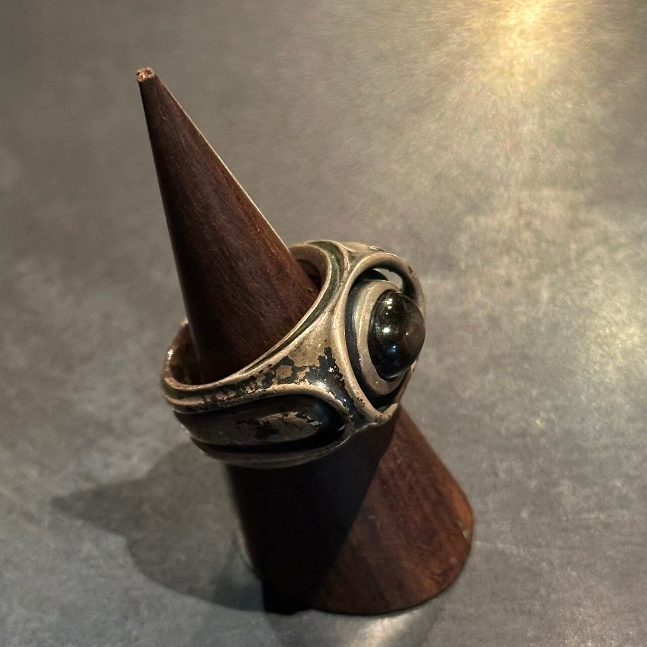 海外で買い付けたオニキスデザインのシルバーリングです。