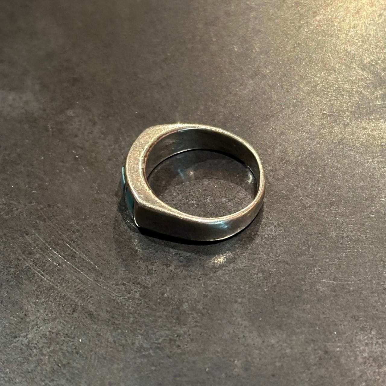 海外で買い付けたスクエアカラーデザインのシルバーリングです。