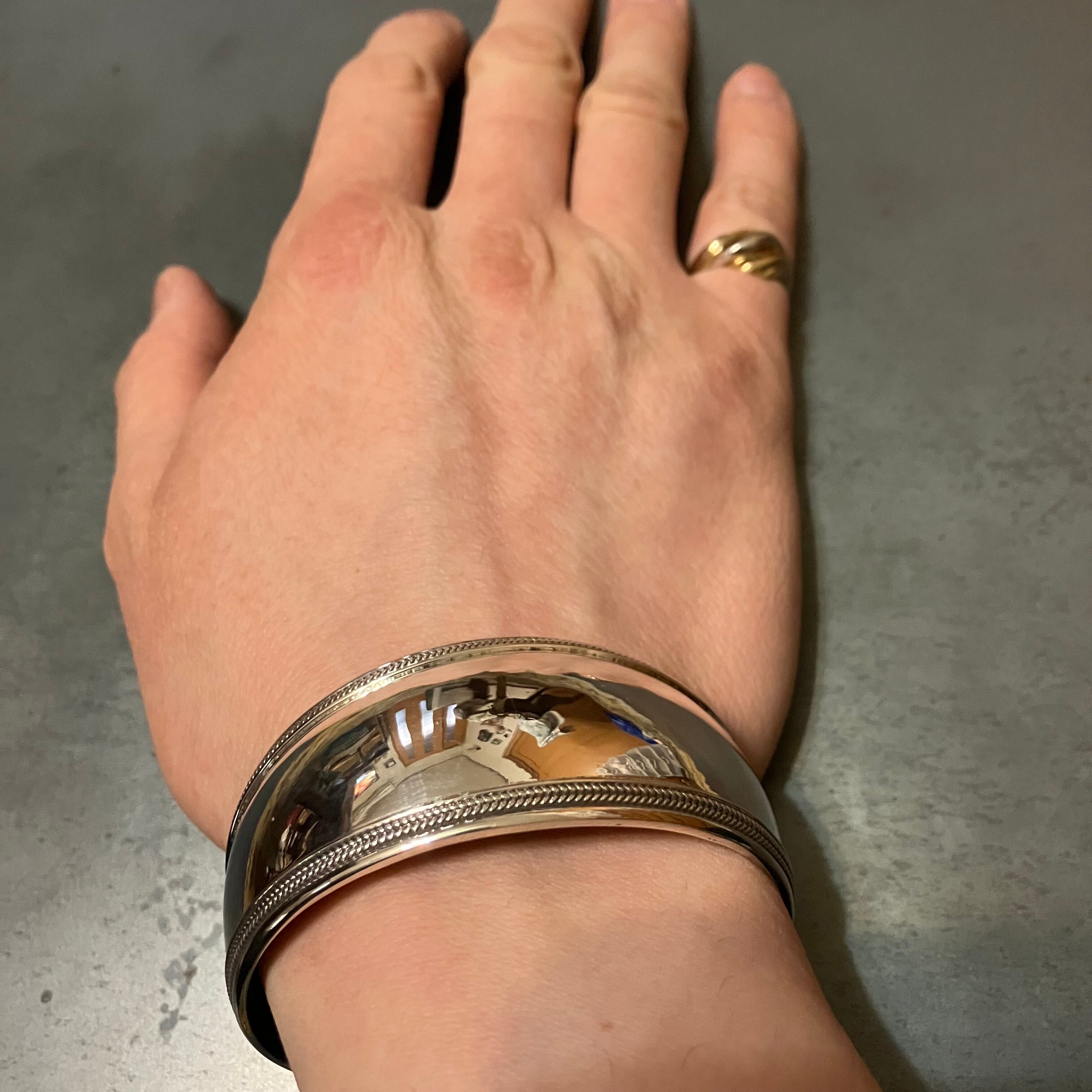 海外で買い付けたトライバルワイドデザインバングルです。