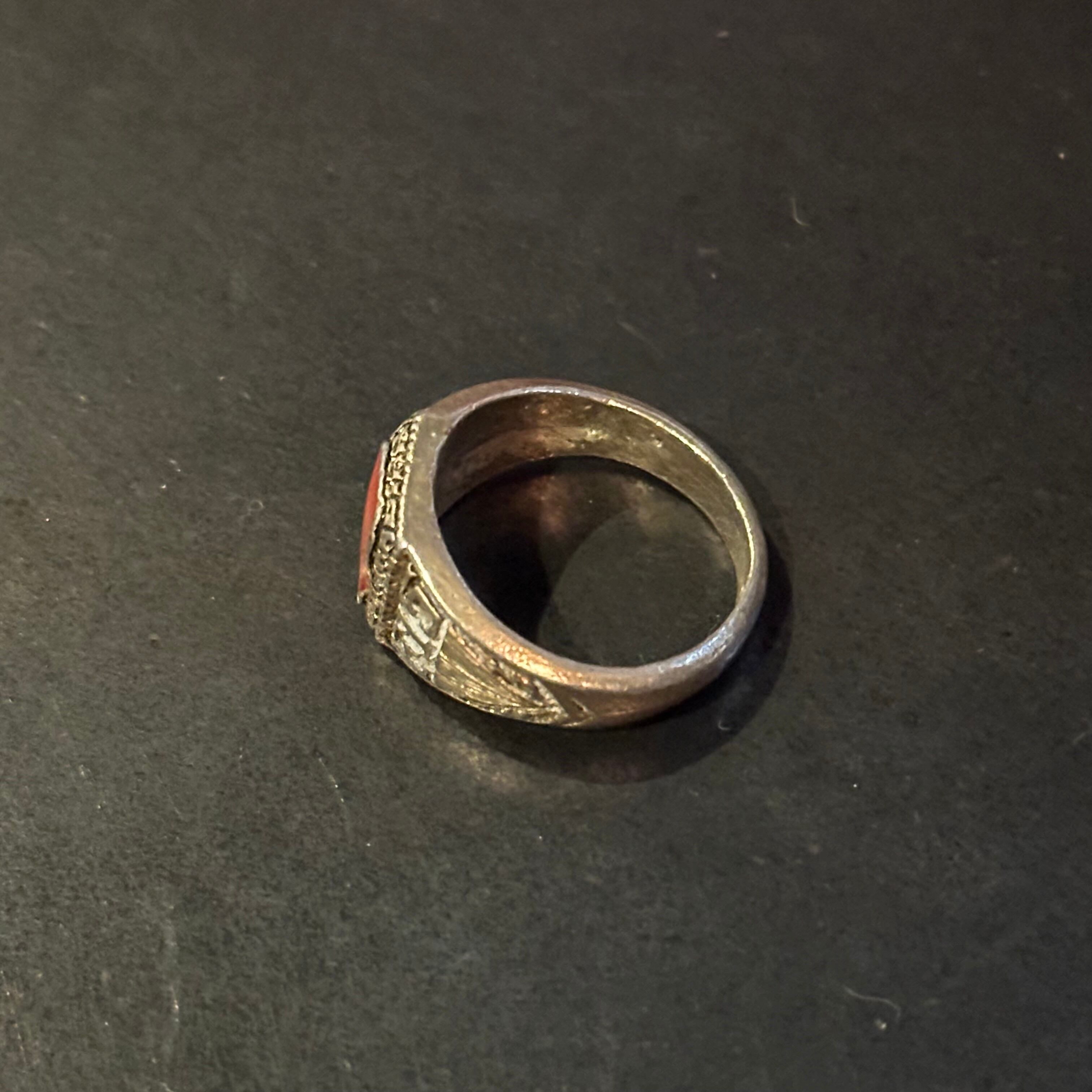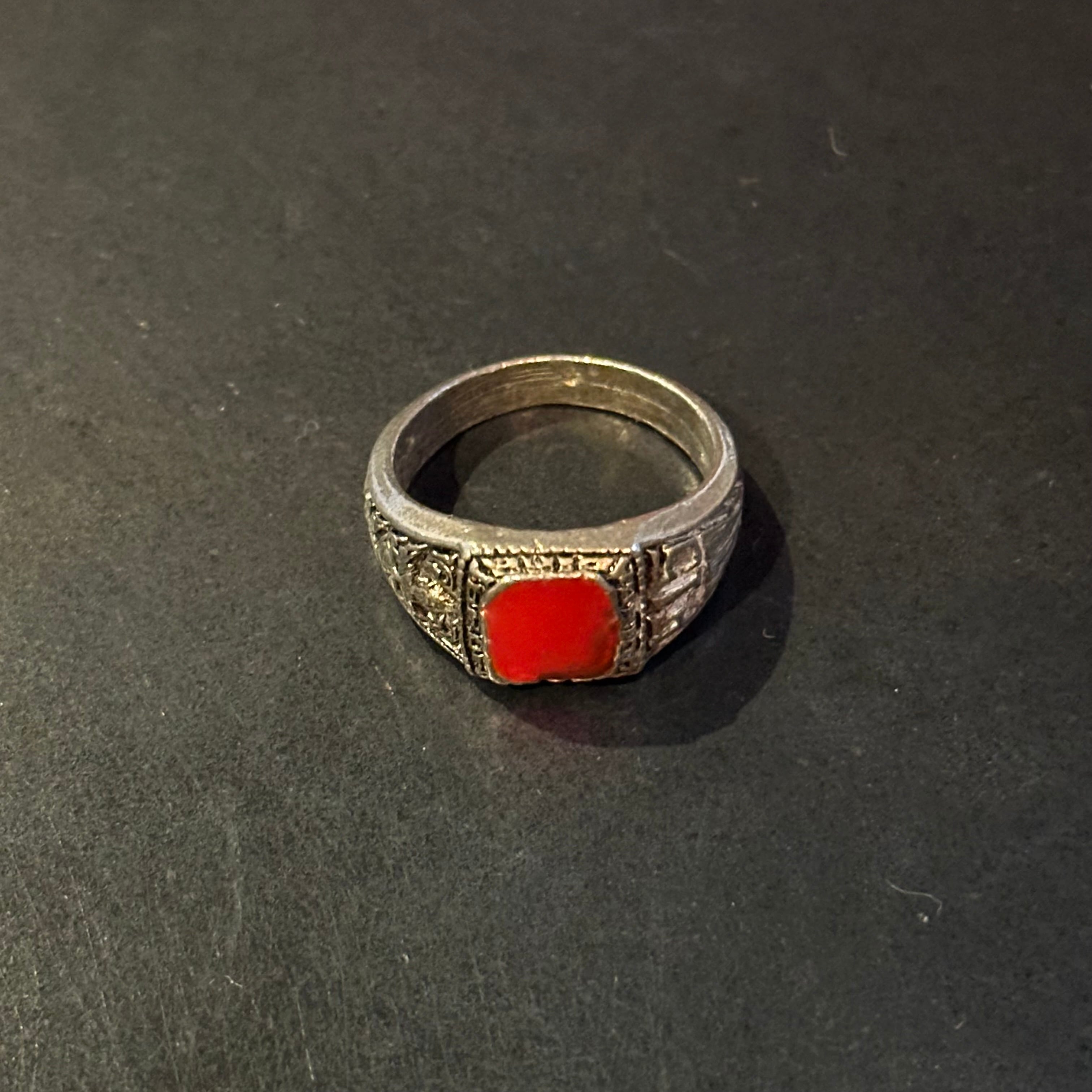 海外で買い付けたレッドストーンデザインのシルバーリングです。