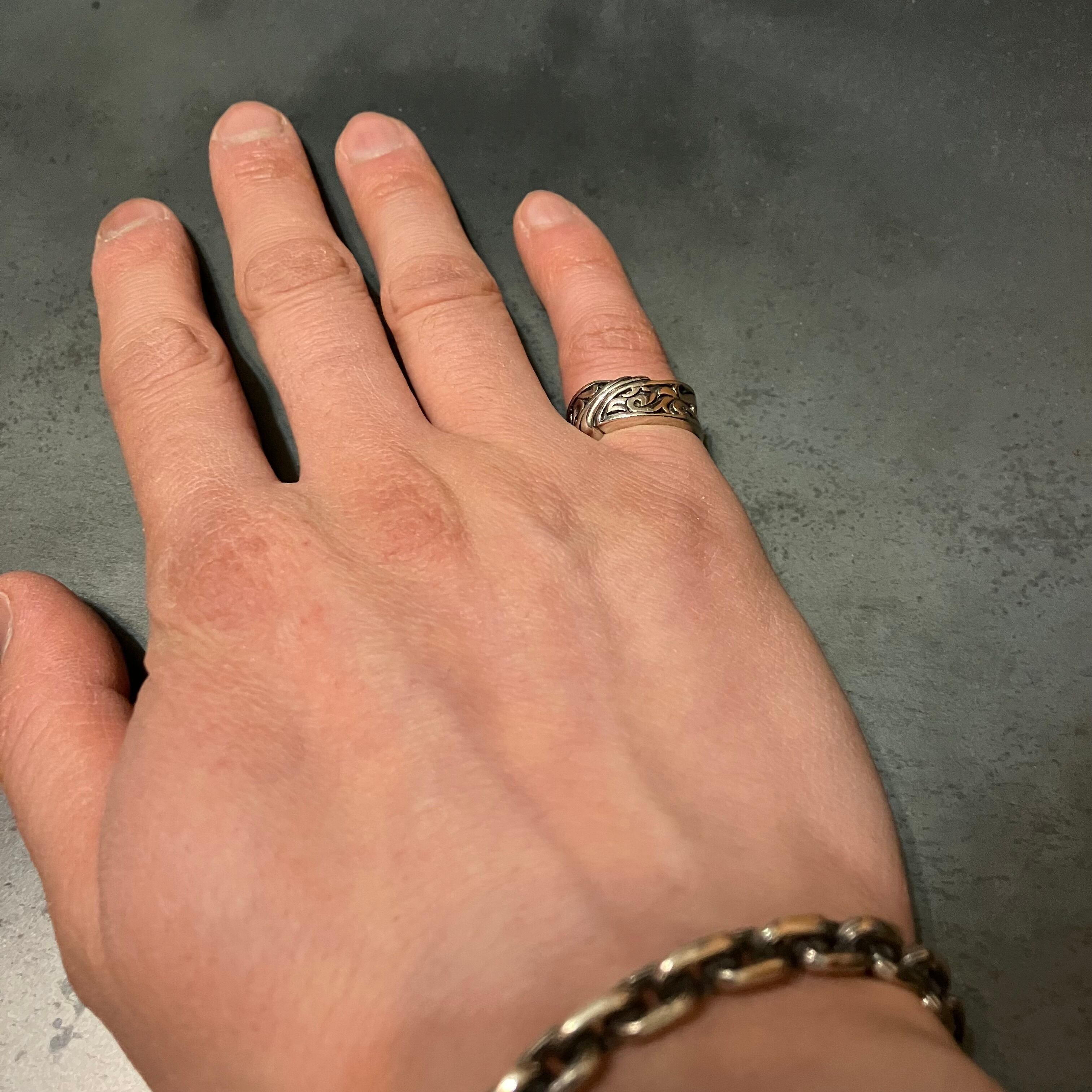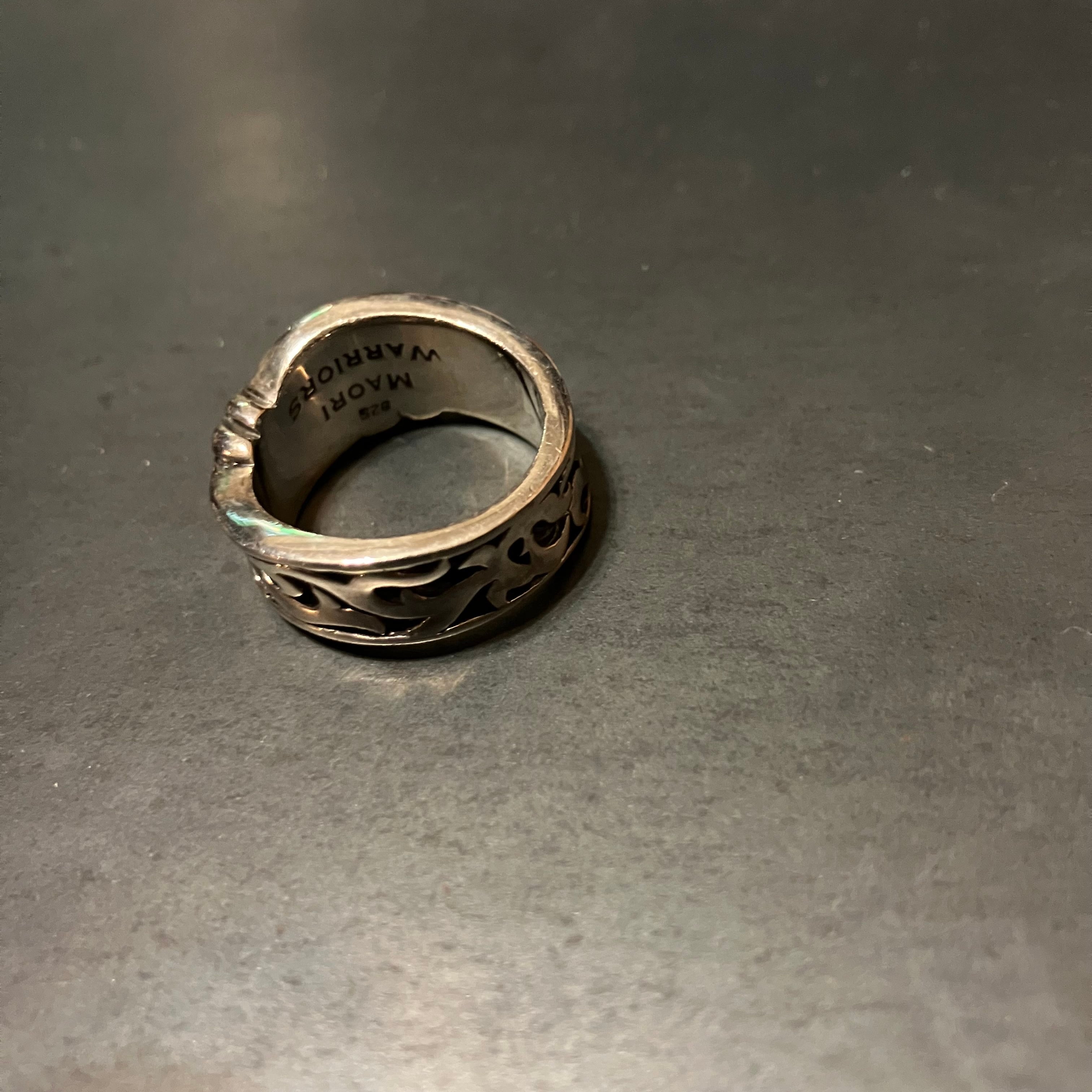 海外で買い付けた彫刻デザインのシルバーリングです。