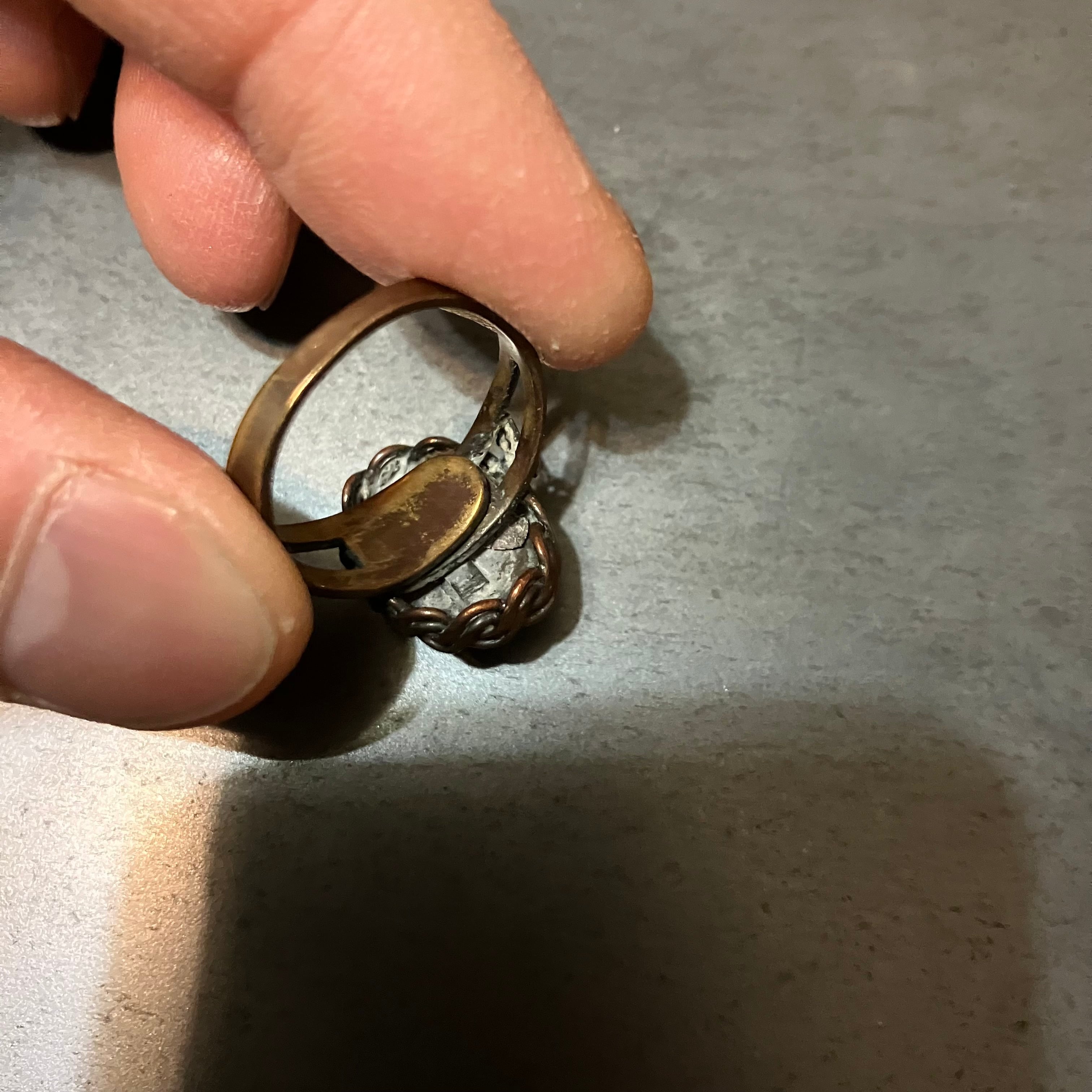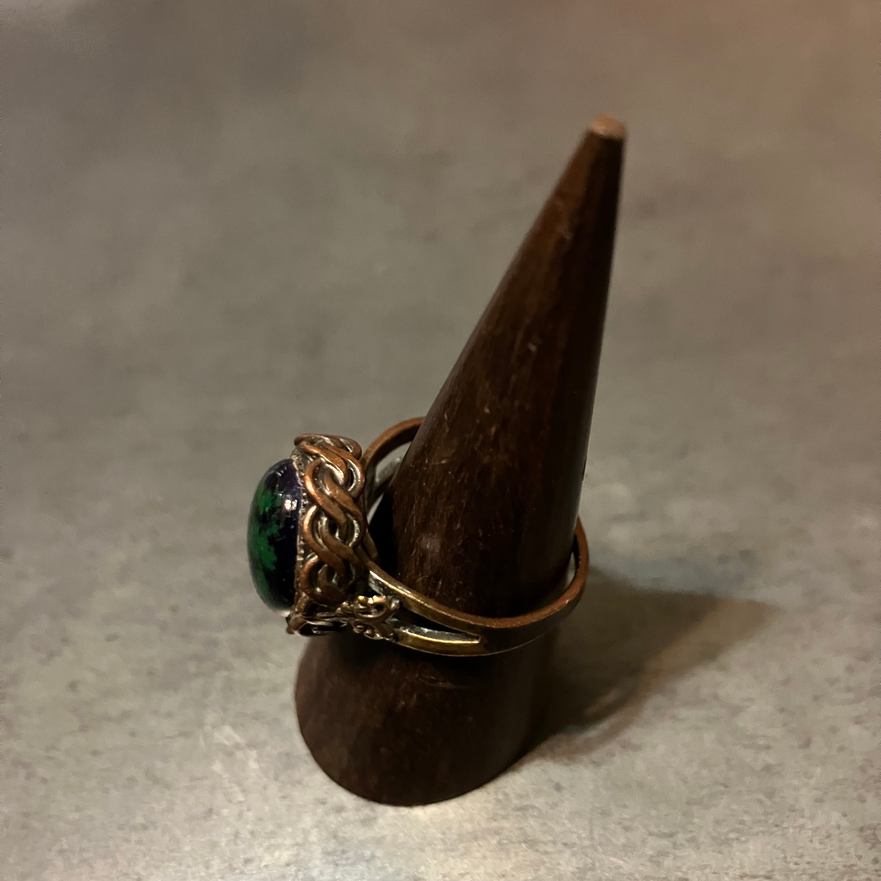 海外で買い付けたグリーンストーンデザインのシルバーリングです。
